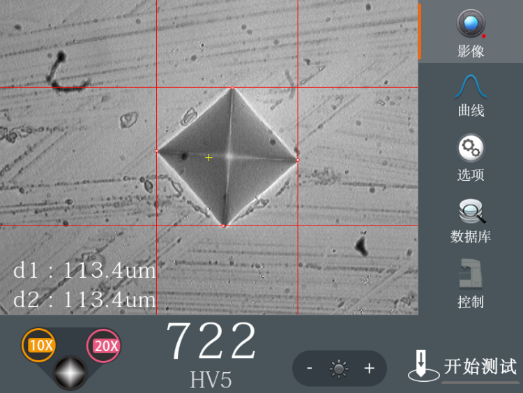 3. 嵌入式影像技术取代传统测量目镜,使用摄像头+显示屏模式,压痕图像,显示屏直接显示